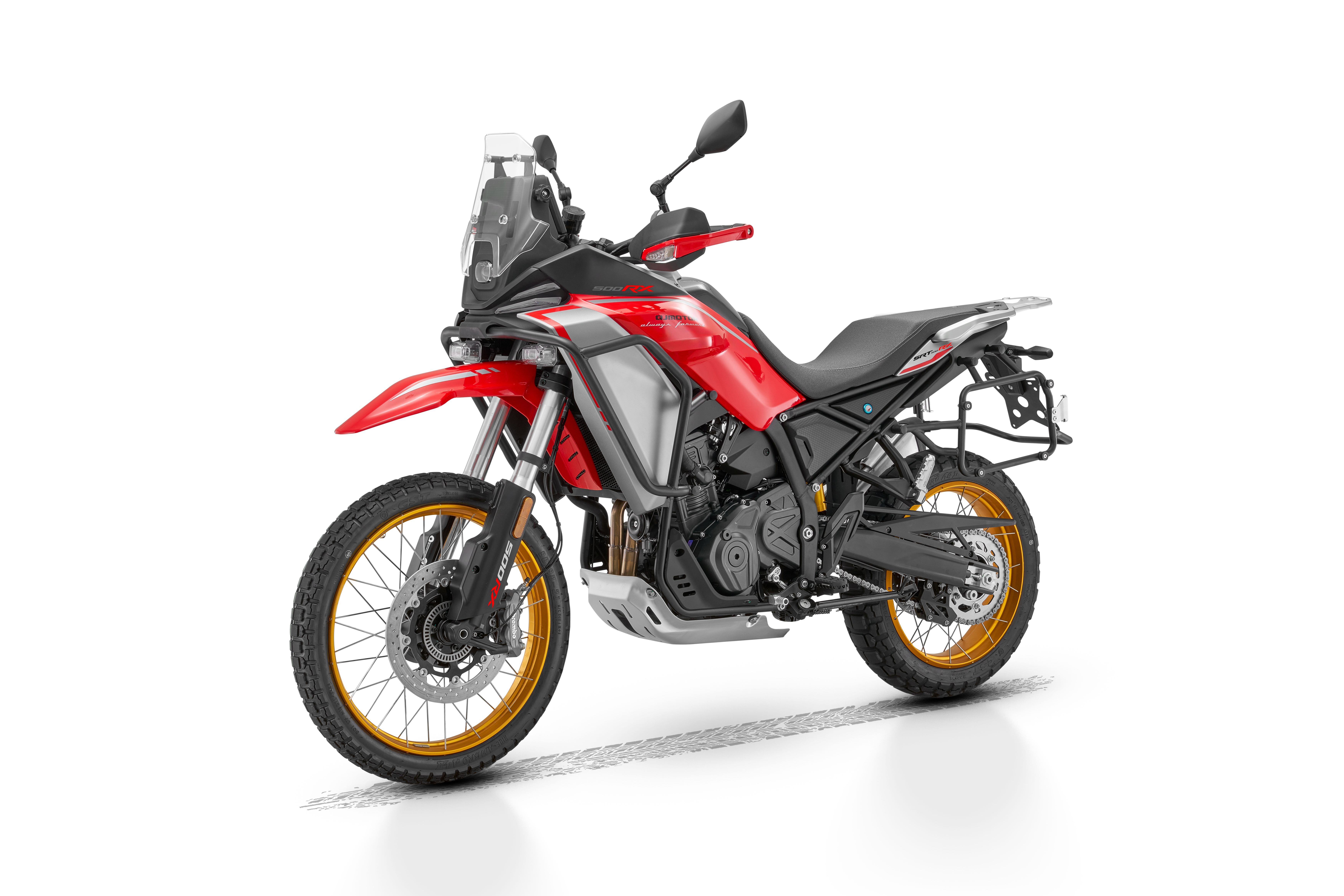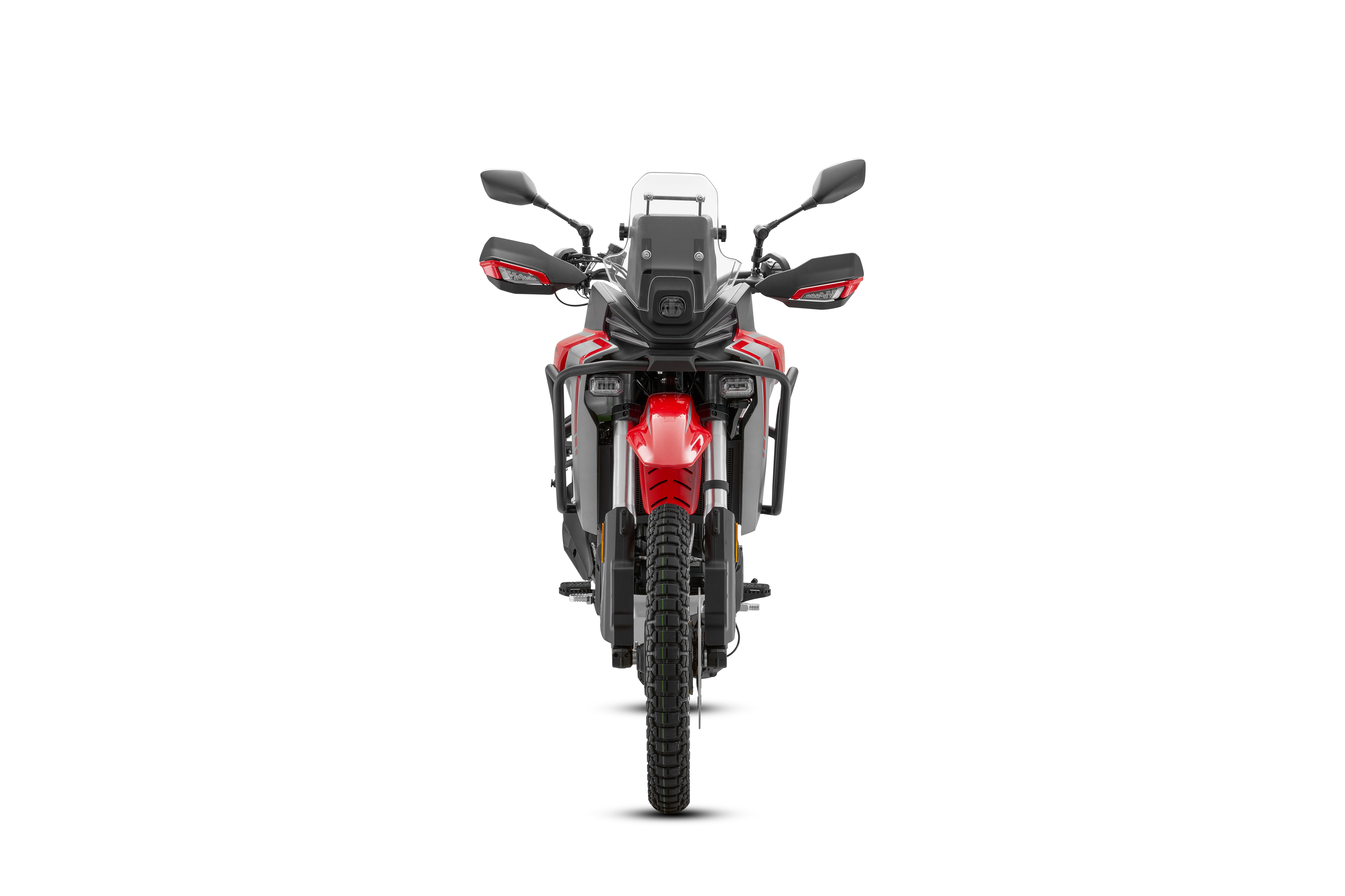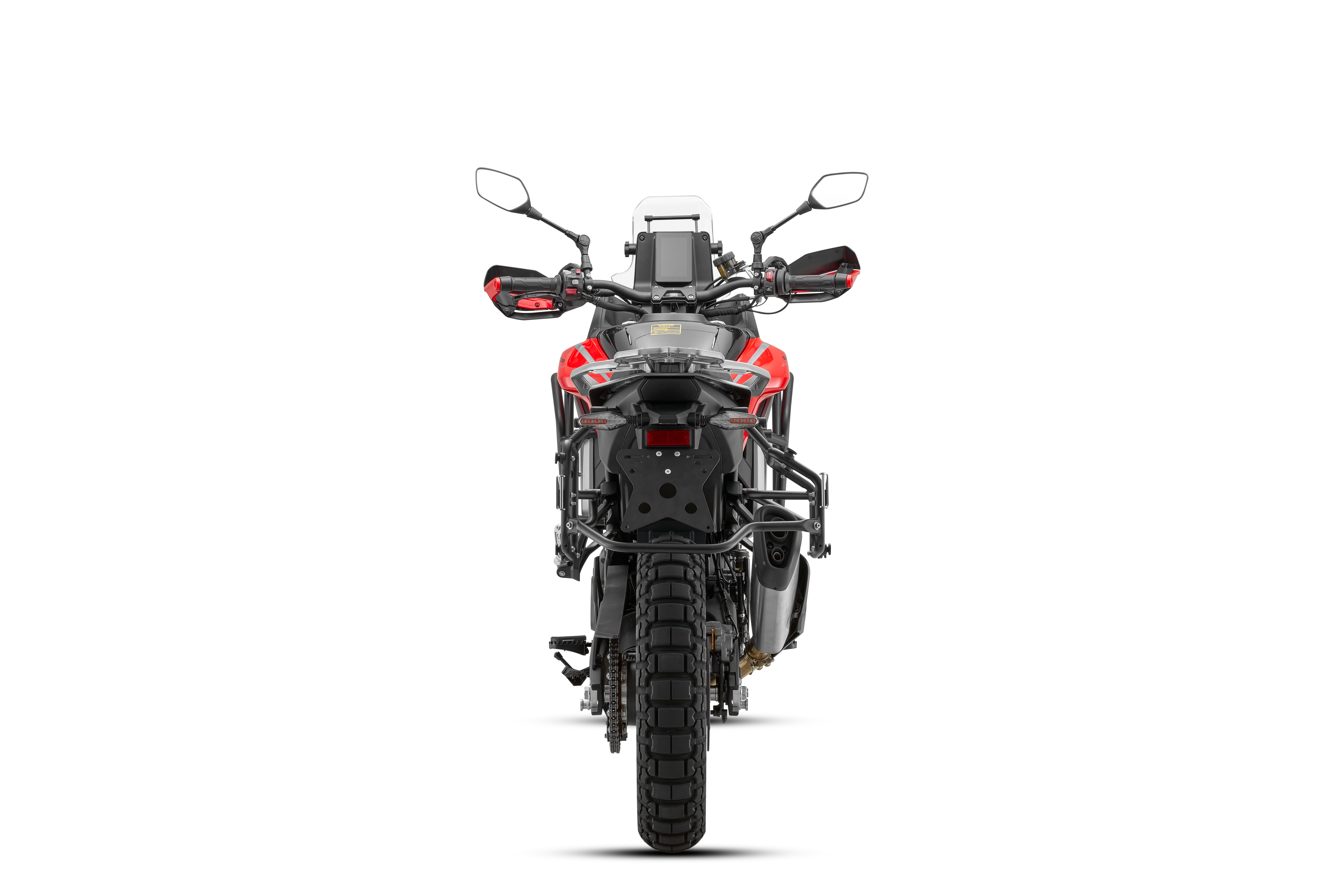 Chassiset er udformet med adventure DNA: en stålramme kombineret med komponenter, der tager højde for både vejasfalt og lettere grusstrækninger. Den har 21″ forhjul og 18″ baghjul, hvilket styrker dens alsidighed i forskellige forhold.